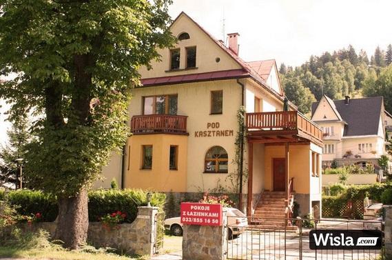 Willa „Pod Kasztanem” usytuowana w malowniczej dolinie Kopydło, nieopodal centrum Wisły. Obiekt zapewnia noclegi w pokojach 2 i 3 osobowych z łazienkami i TV oraz apartamenty dla 4 i 5 osób. Każdy pokój posiada: łazienkę, TV, czajnik bezprzewodowy oraz podstawową zastawę (sztućce, kubki, talerze). W sezonie zimowym jest to wspaniale miejsce do uprawiania sportów zimowych. W bliskiej odległości od Willi znajduje się wyciąg –Pasieki, Siglany i Stożeki (naśnieżane i oświetlane) oraz kolej linowa – Stożek. Przy obiekcie znajduję się rzeka – Kopydło oraz kościół zabytkowy, a także restauracje „Olimpia” i „u Karola”, gdzie można posmakować tutejszej kuchni.